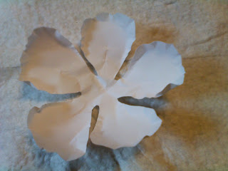 El siguiente paso será rizar las puntas de los pétalos ayudándote de una brocheta de madera, realiza después un corte en la parte inferior del pétalo para unirlo con pegamento o silicona, de esta forma queda ovalado el pétalo y da profundidad a la flor.